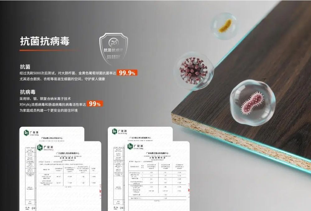更贴心的是,热康板还能抗菌抗病毒,抗菌率高达99.9%,抗病毒率99%!这对于有老人、小孩的家庭,或是需要极高卫生标准的房间,都是绝佳的选择。